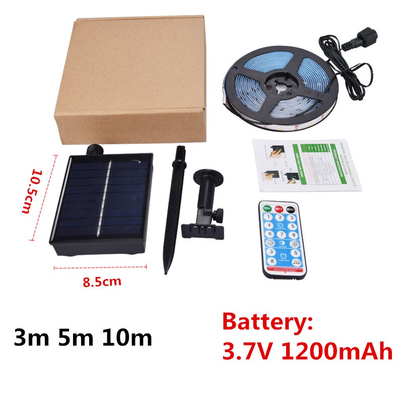 Solaire alimenté 3/4/5/10M bande lumineuse extérieure rvb 2835 Flexible éclairage ruban bande étanche LED bande rétro-éclairage jardin décor