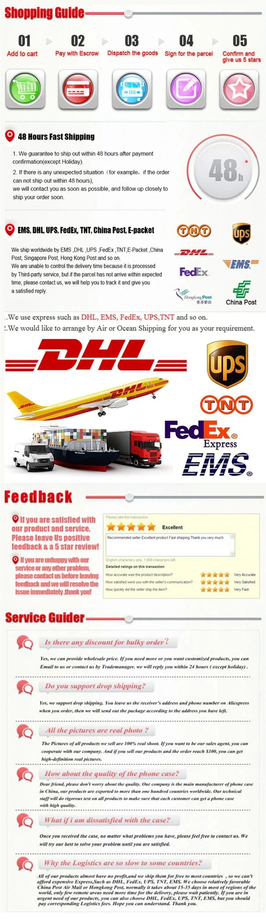 4. Offriamo anche spedizioni espresse come DHL, UPS, EMS ecc., Non esitate a contattarci se ne avete urgente bisogno o la quantità è grande.