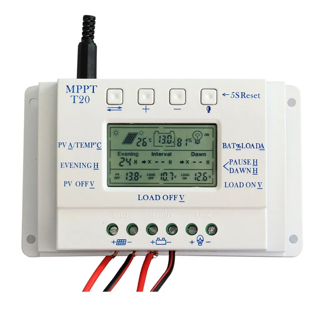 T10, T20 10A 20A Regolatore di carica solare Doppio timer