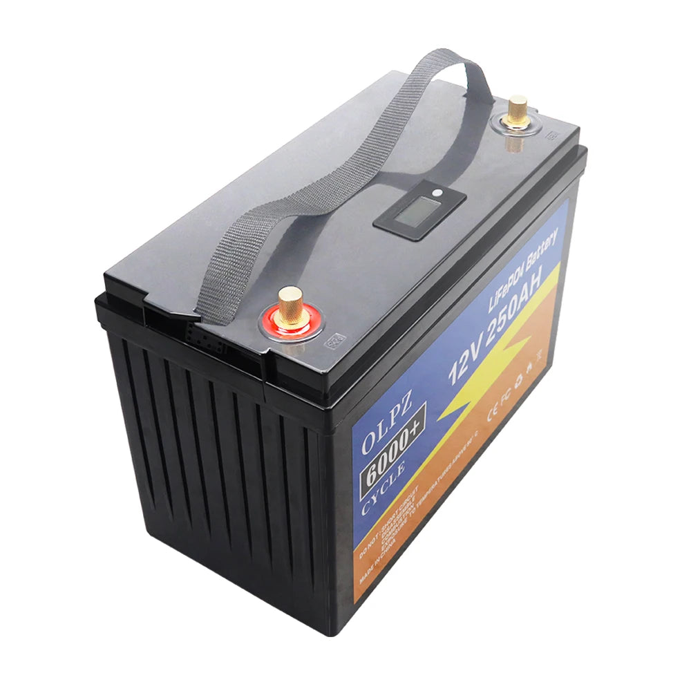 LiFePO4 Lithium Iron Phosphate Battery, built-in BMS, 12V, 400Ah, 300Ah, 250Ah, or 100Ah capacity. Up to 6000+ cycles for campers, golf carts, and solar storage applications.