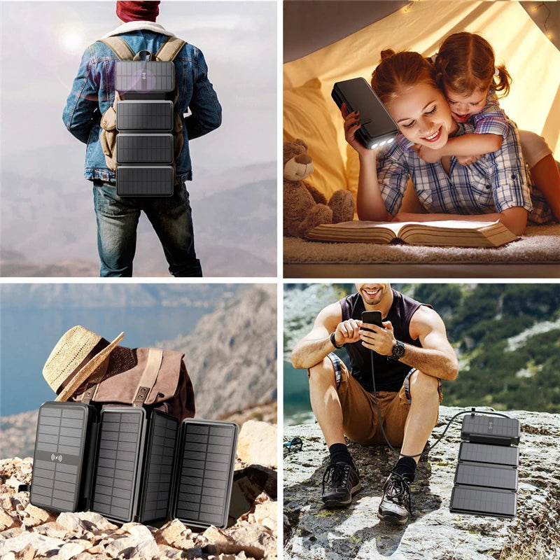 43800mAh Solar Power Bank Fast Qi Wireless Charger for iPhone 12 Samsung Huawei Xiaomi Poverbank PD 20W Fast Charging Powerbank