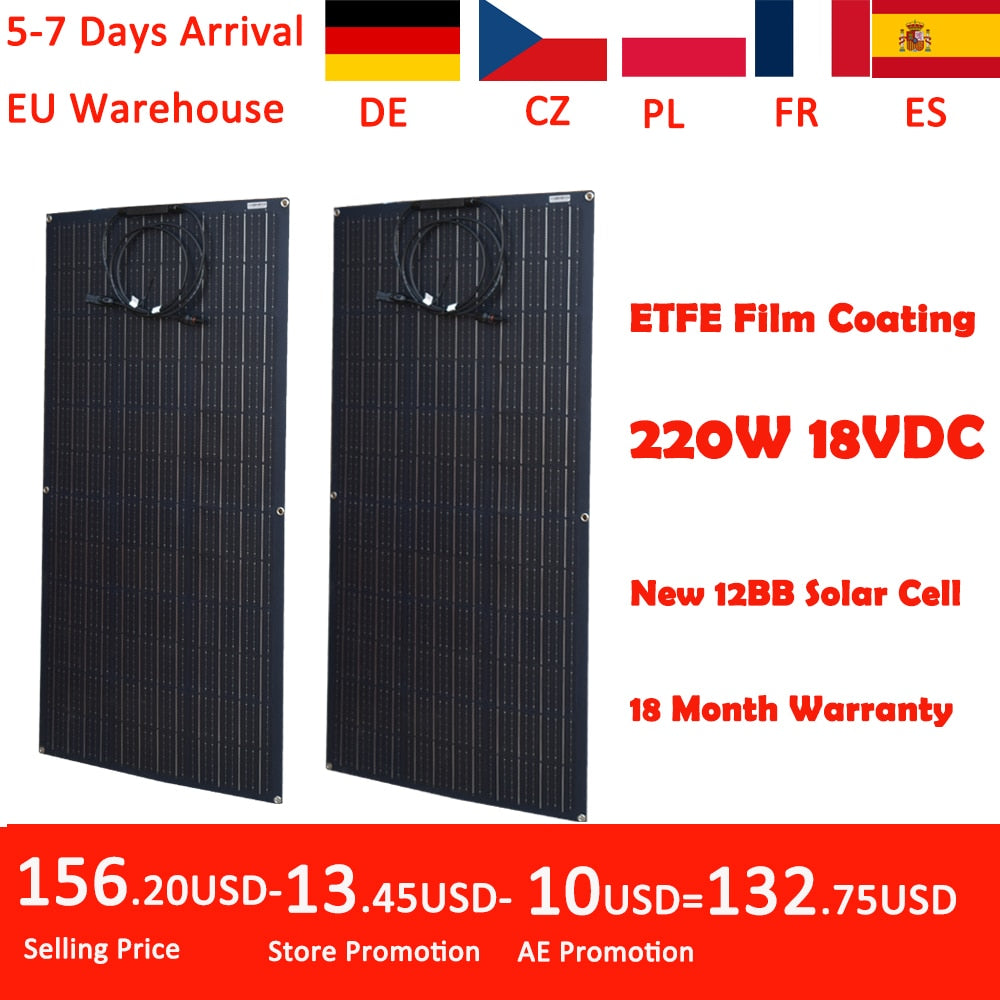 Jingyang Solar Panel 300w 330W 400w 440W 200w 100w 110W ETFE Flexible Monocrystalline Solar Cell 1000w 12V Battery Charger