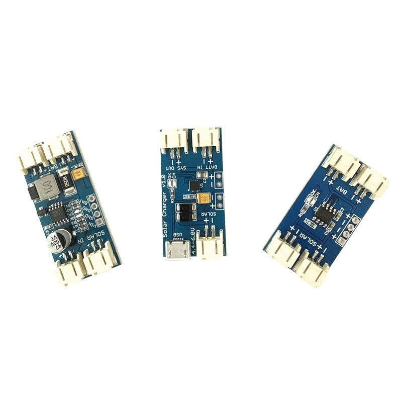 This is a maximum power point tracking (MPPT) solar charger for single-cell LiPo batteries. This MPPT solar charger provide you with the ability to get the most possible power out of your solar panel or other photovoltaic device and into a rechargable LiPo battery. Set-up is easy as well, just plug your solar panel into one side of the solar charger and your battery into the other and you are good to start charging! Solar maximum power point tracking (MPPT) is to ensure that the light intensity change, photovoltaic cells output maximum power, to make full use of solar energy. In general, need to use a switch mode DC - DC converter to realize MPPT function, keep the output voltage and charging current product maximize (output). The output of the Solar Charger is intended to charge a single polymer lithium ion cell. The load should be connected in parallel with the battery. Each Solar Charger comes equipped with a CN3791 power tracking battery charging circuit and pre-installed four 2-pin JST/PH2.0 connectors. Default we have set the holding voltage for MPPT. So we have 3 version for the input voltage 6V/9V/12V(for Solar Panel working voltage 6V/9V/12V), very suitable for the application of the input voltage and battery voltage difference is bigger. Note: If the CN3791 MPPT Solar Charger is 9V version, you must use the Solar panel working Voltage is 9V.