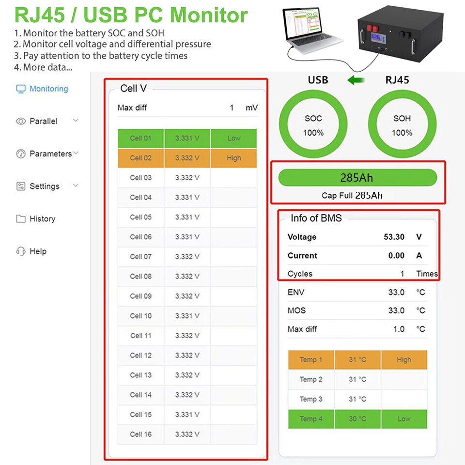 48 280Ah LiFePO4 14Kwh Battery Pack SPECIFICATIONS
