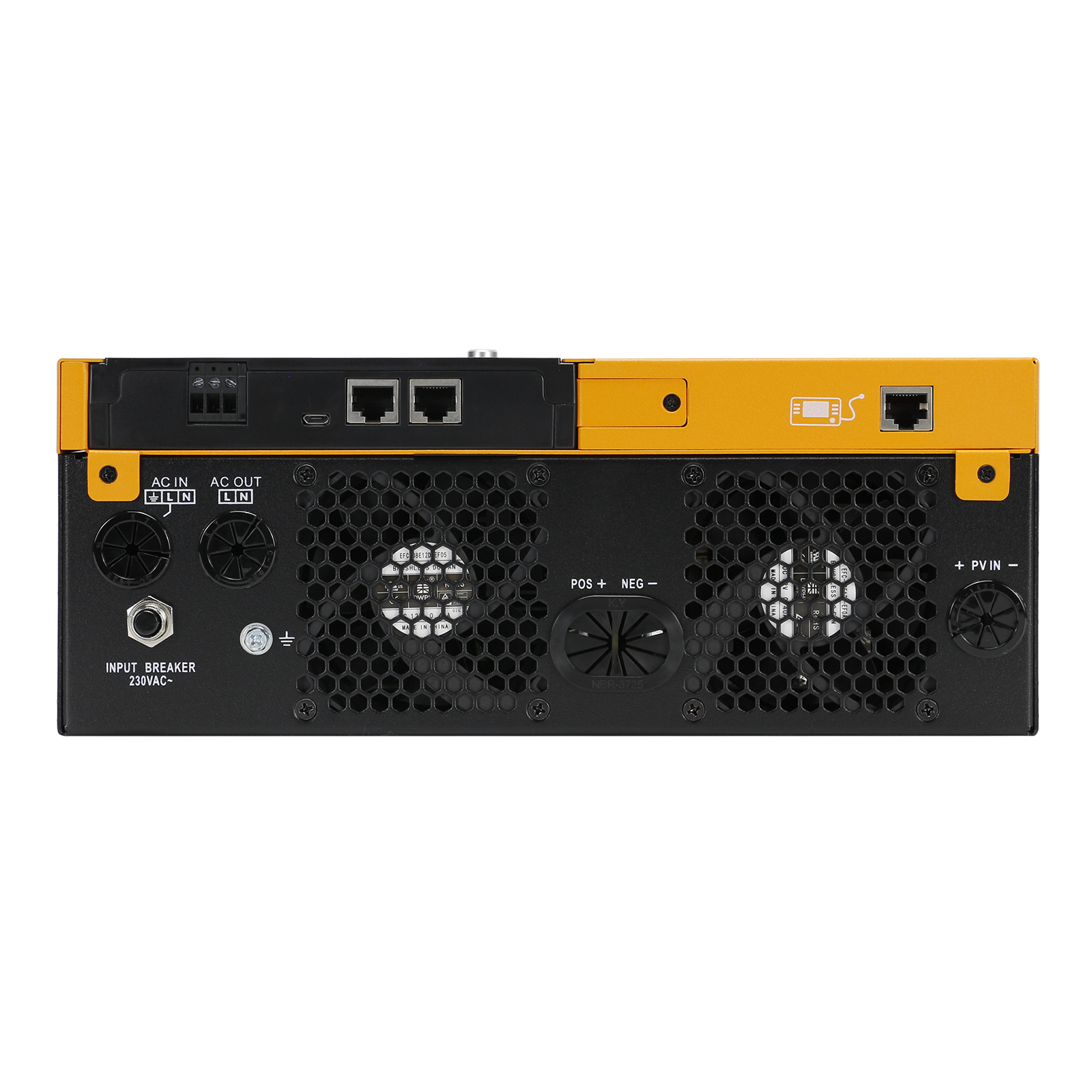 PowMr's 5000W hybrid solar inverter features a dust-proof design, prolonging lifespan and improving reliability. The intelligent cooling fan ensures efficient heat dissipation, simplifying maintenance and reducing costs. With replaceable fans, you can easily maintain your inverter for safe and effective operation.