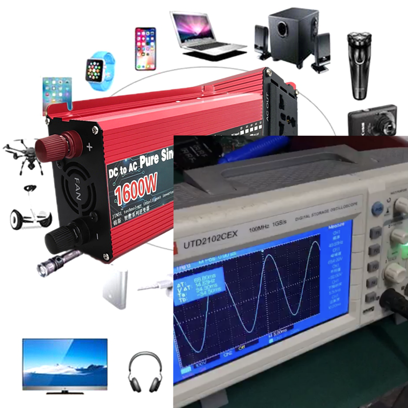 Portable Pure Sine Wave Inverter converts DC 12v/24v power to AC 110V/220V, offering 1000W, 1600W, 2000W, or 3000W output. Buy now! |