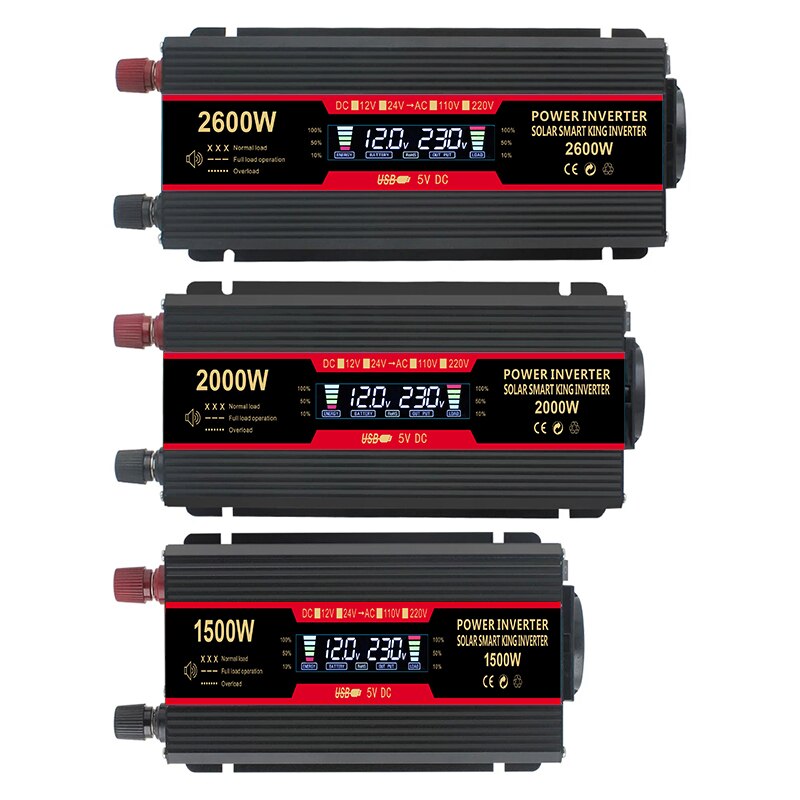 Solar Inverter 12v 220v Power Inverter 1500W 2000W 2600W Modified Sine Wave LCD Display 2 USB Car Transformer Convert EU Socket