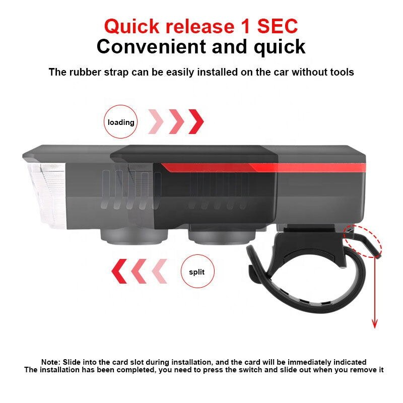 LY-17 Solar Bicycle Light features a multifunctional headlamp with strong long-shot illumination, power display, and daily waterproofing. It's rechargeable via USB and has 5 replaceable sound modes. Simply hold down for 5 seconds to activate.