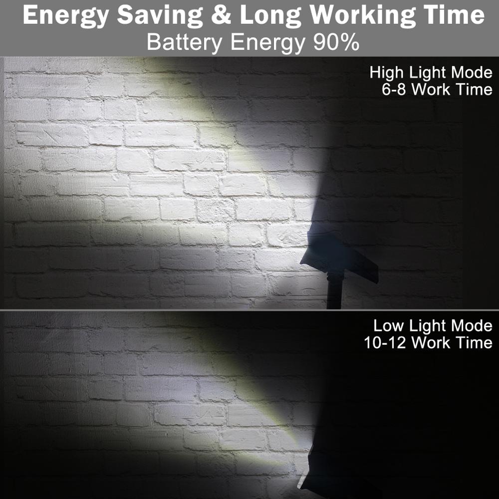 Powered by rechargeable #18650 lithium batteries and high-efficiency solar panels, this spotlight charges quickly under sunlight. Adjustable brightness levels include low (click) to high, with better conversion rates.